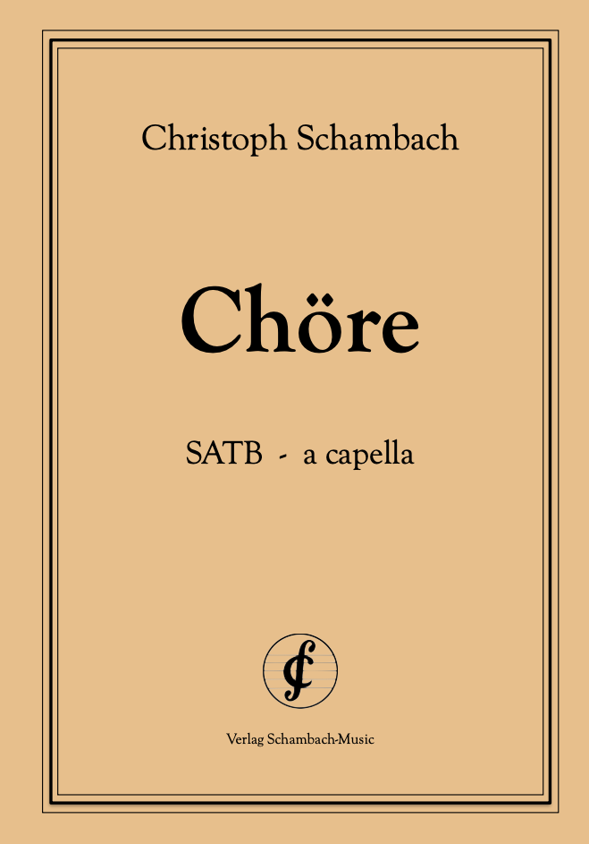 Willkommen im Shop des Verlages Schambach-Music. Sie haben Lust, Musik von Christoph Schambach selbst zu spielen oder zu verschenken? Hier finden Sie eine Auswahl seiner Stücke - Noten für Lieder, Chöre, Bläser-Kammermusik, Streicher-Kammermusik und weitere Kategorien.