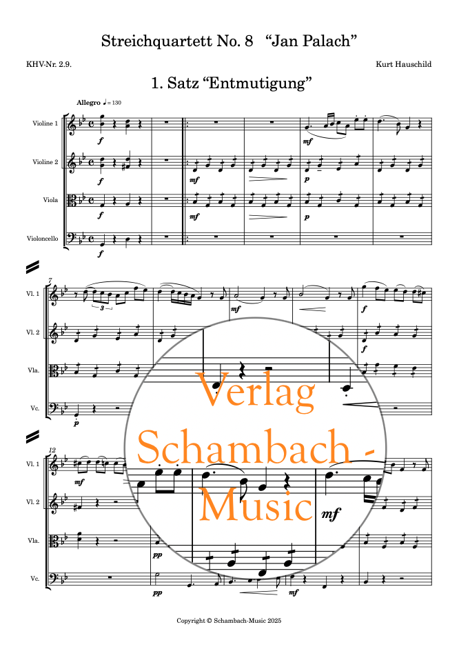 Streichquartett Nr. 8 "Jan Palach" von Kurt Hauschild